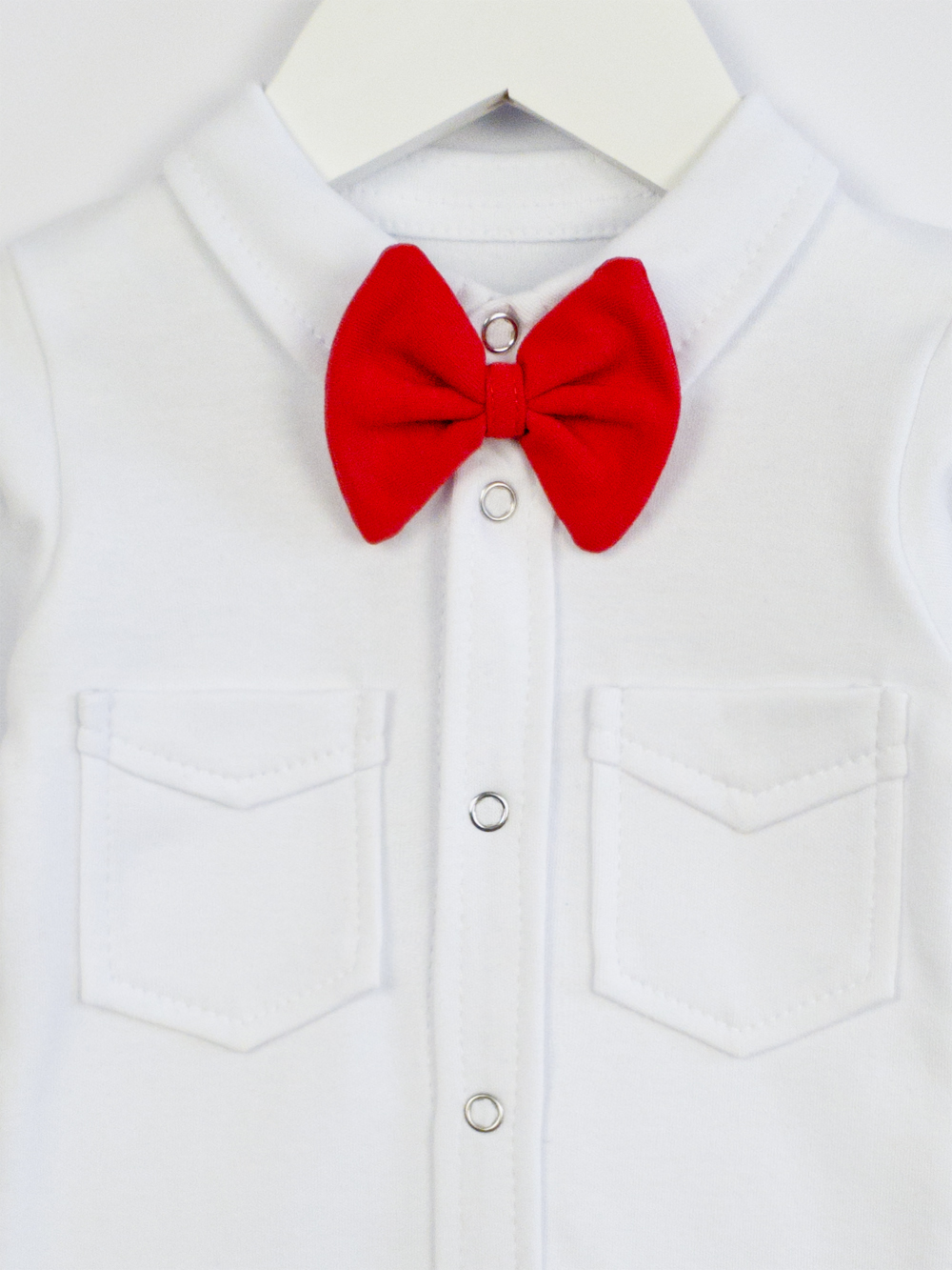 Потрясающее боди для маленького модника! Оно имеет длинный втачной рукав, а горловина обработана воротником, что обеспечивает комфорт и защиту нежной кожи малыша. Застежки-кнопочки расположены по всей длине спереди и между ножками, обеспечивая удобство и простоту одевания.