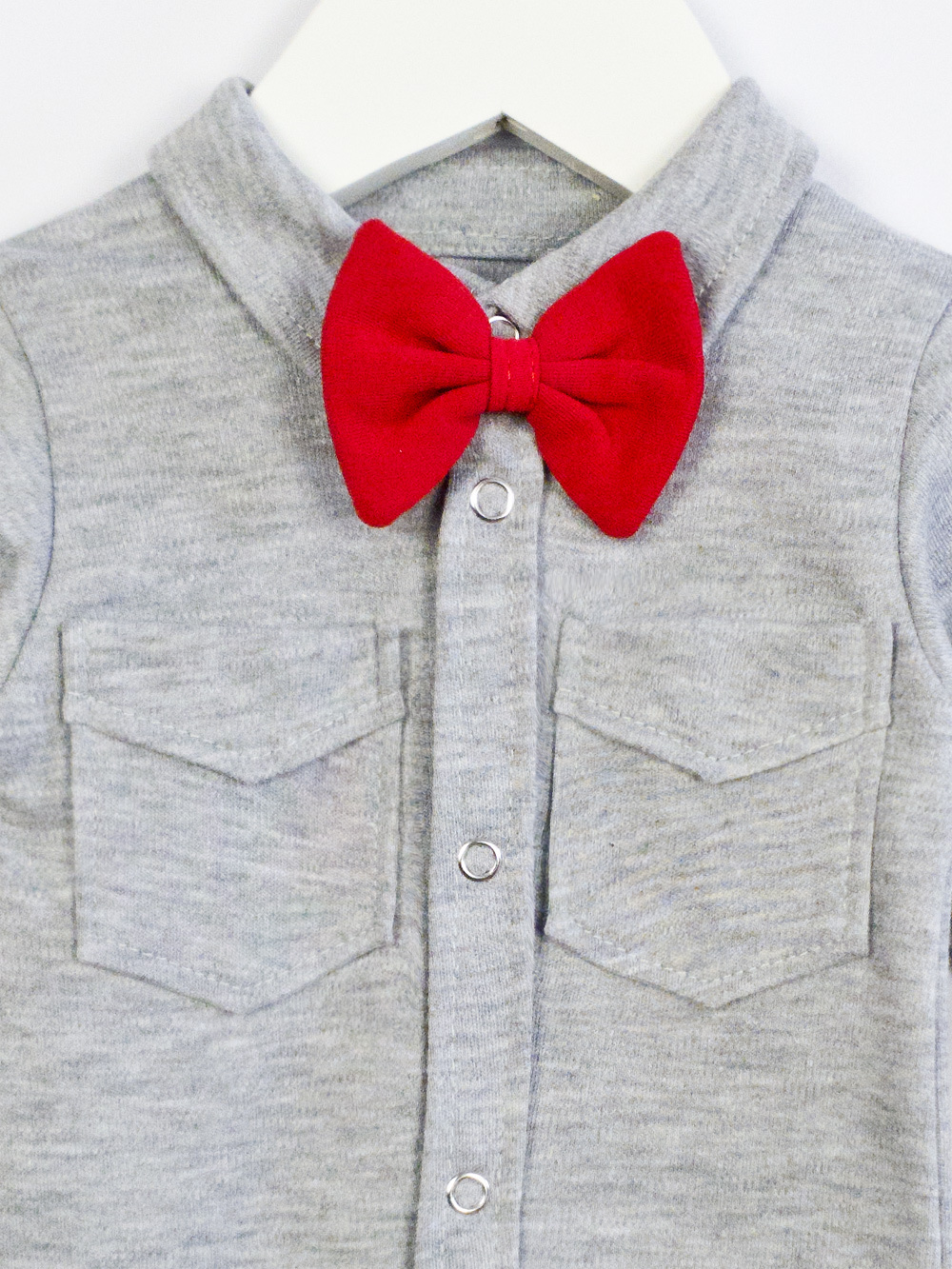 Потрясающее боди для маленького модника! Оно имеет длинный втачной рукав, а горловина обработана воротником, что обеспечивает комфорт и защиту нежной кожи малыша. Застежки-кнопочки расположены по всей длине спереди и между ножками, обеспечивая удобство и простоту одевания.