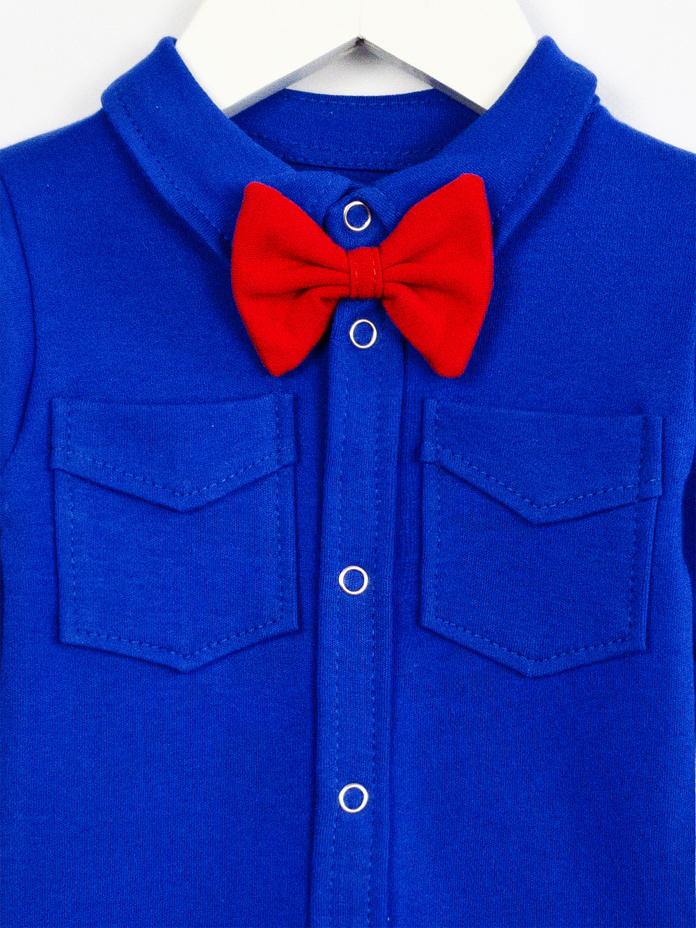 Потрясающее боди для маленького модника! Оно имеет длинный втачной рукав, а горловина обработана воротником, что обеспечивает комфорт и защиту нежной кожи малыша. Застежки-кнопочки расположены по всей длине спереди и между ножками, обеспечивая удобство и простоту одевания.