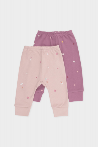 Брюки в упаковке 2 шт для новорождённых из мягкого, эластичного трикотажа, произведенного из натурального хлопка. Пояс на резинке. Оригинальная набивка выполнена из стойких, гипоаллергенных текстильных красителей. Все трикотажные полотна производятся в соответсвии с нормами Швейцарского сертификата ЭкоТекс.