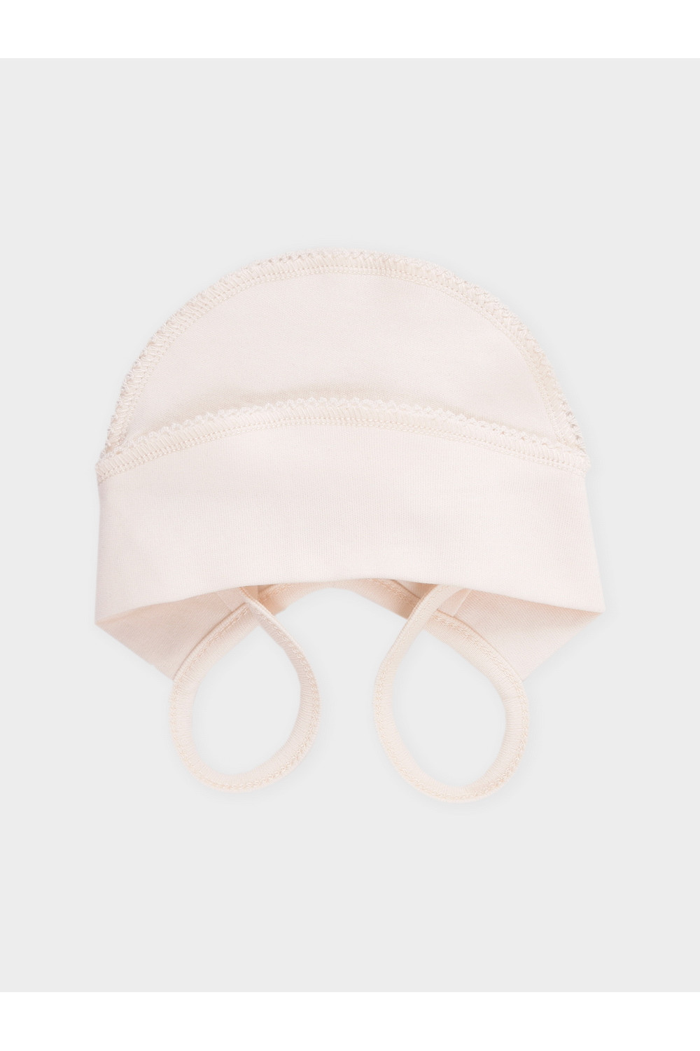 Шапочка на завязках для новорождённых. Изготовлена из мягкого эластичного трикотажа интерлок, произведённого из натурального хлопка. Все трикотажные полотна производятся в соответствии с нормами швейцарского сертификата ЭкоТекс.