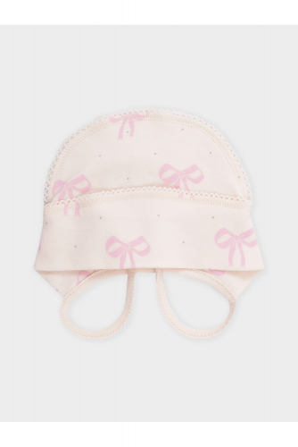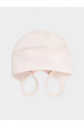 Шапочка на завязках для новорождённых. Изготовлена из мягкого эластичного трикотажа интерлок, произведённого из натурального хлопка. Все трикотажные полотна производятся в соответствии с нормами швейцарского сертификата ЭкоТекс.