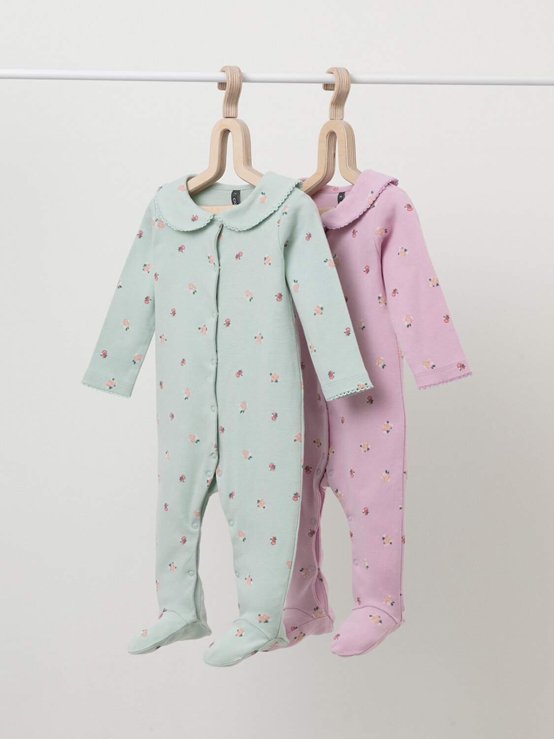 Комбинезоны для новорождённых из мягкого эластичного трикотажа, произведённого из натурального хлопка. В упаковке 2 штуки. Застёгиваются спереди на кнопки. В размере 56 на рукавах предусмотрены антицарапки, швы выполнены наружу. Украшены воротничком. Оригинальная набивка выполнена из стойких гипоаллергенных текстильных красителей. Все трикотажные полотна производятся в соответствии с нормами Швейцарского сертификата ЭкоТекс.