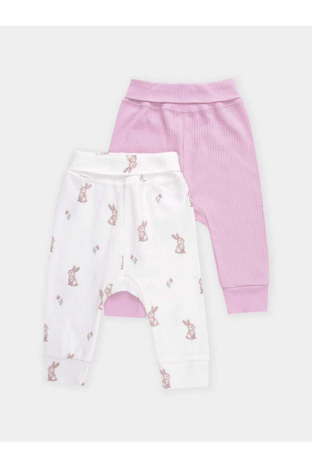 Брюки для новорождённых из мягкого эластичного трикотажа, произведённого из натурального хлопка. В упаковке 2 штуки. Пояс с отворотом на резинке. Все трикотажные полотна производятся в соответствии с нормами швейцарского сертификата ЭкоТекс.