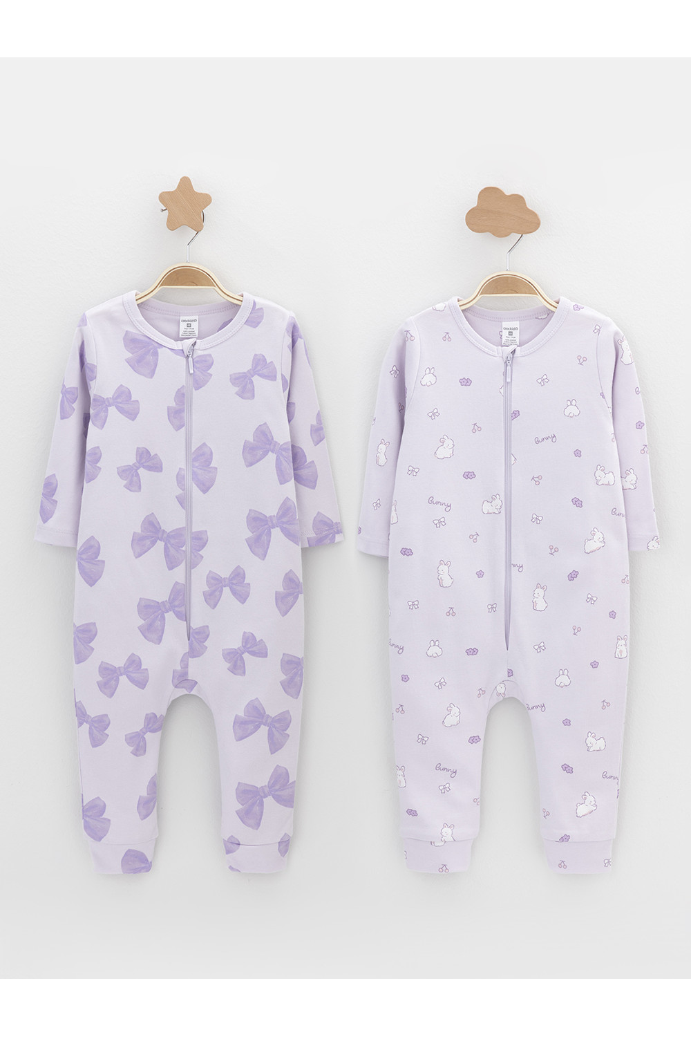 Комбинезоны для новорождённых из эластичного трикотажа, произведённого из натурального хлопка. В упаковке 2 штуки. Застёгиваются спереди на молнию с мягкой защитой шеи и подбородка. По шаговому шву застёжка на кнопки. Оригинальная набивка выполнена из стойких гипоаллергенных текстильных красителей. Все трикотажные полотна производятся в соответствии с нормами швейцарского сертификата ЭкоТекс.