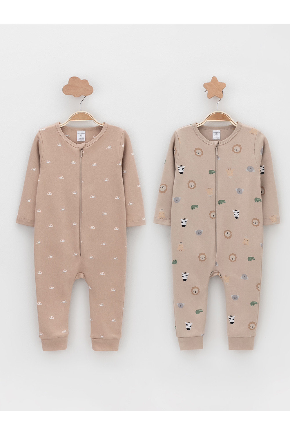 Комбинезоны для новорождённых из мягкого эластичного трикотажа интерлок, произведённого из натурального хлопка. В упаковке 2 штуки. Застёгиваются спереди на молнию, предусмотрена защита подбородка. Оригинальная набивка выполнена из стойких гипоаллергенных текстильных красителей. Все трикотажные полотна производятся в соответствии с нормами Швейцарского сертификата ЭкоТекс.