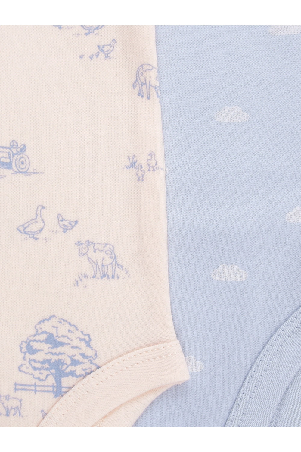 Боди для новорождённых из мягкого эластичного трикотажа, произведённого из натурального хлопка. В упаковке 2 штуки. Застёгиваются на кнопки спереди и по низу изделий. Оригинальная набивка выполнена из стойких гипоаллергенных текстильных красителей. Все трикотажные полотна производятся в соответствии с нормами швейцарского сертификата ЭкоТекс.