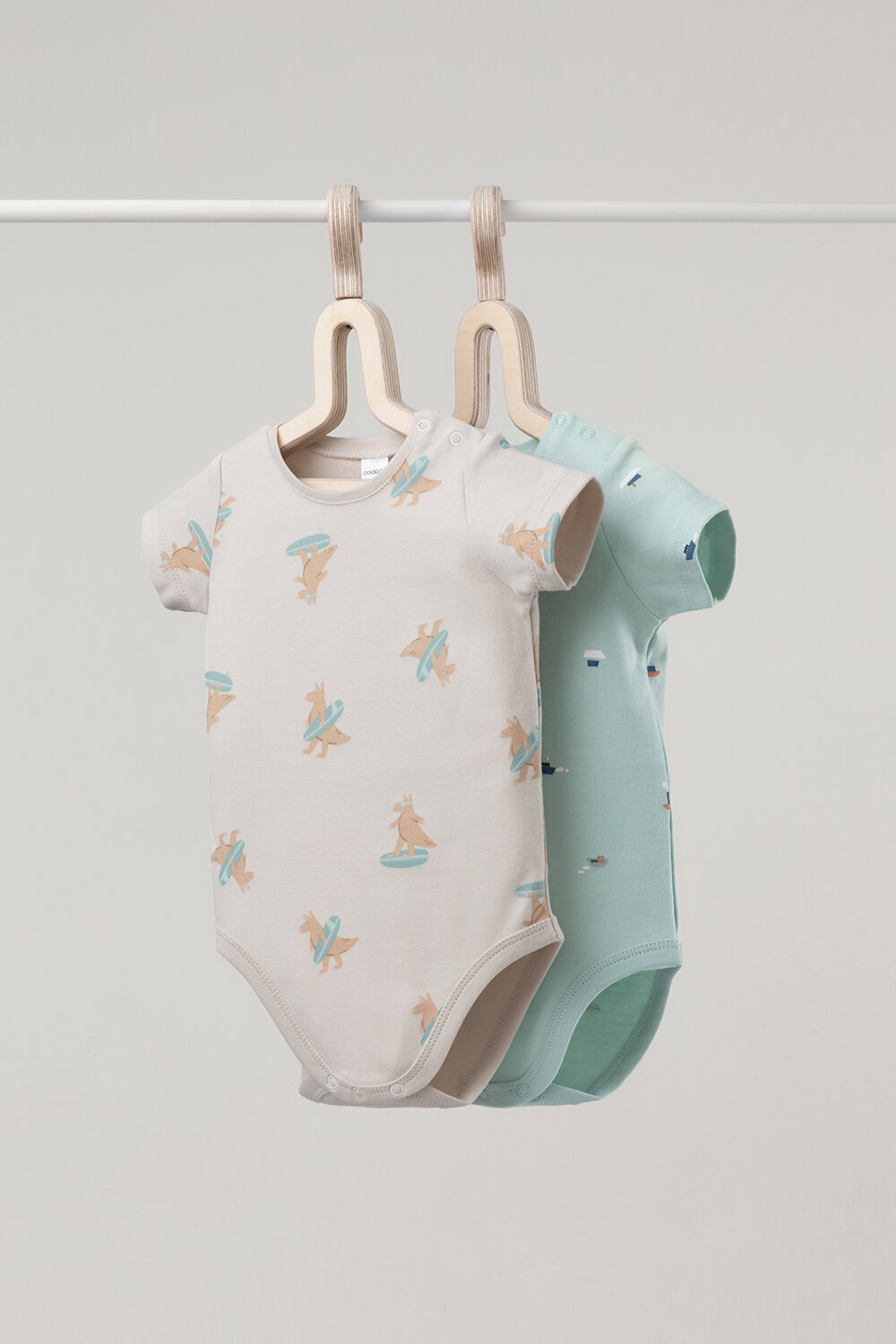Боди для новорождённых из мягкого эластичного трикотажа, произведённого из натурального хлопка. В упаковке 2 штуки. Застёгиваются на кнопки на плече и по низу изделий. Оригинальная набивка выполнена из стойких гипоаллергенных текстильных красителей. Все трикотажные полотна производятся в соответствии с нормами Швейцарского сертификата ЭкоТекс.
