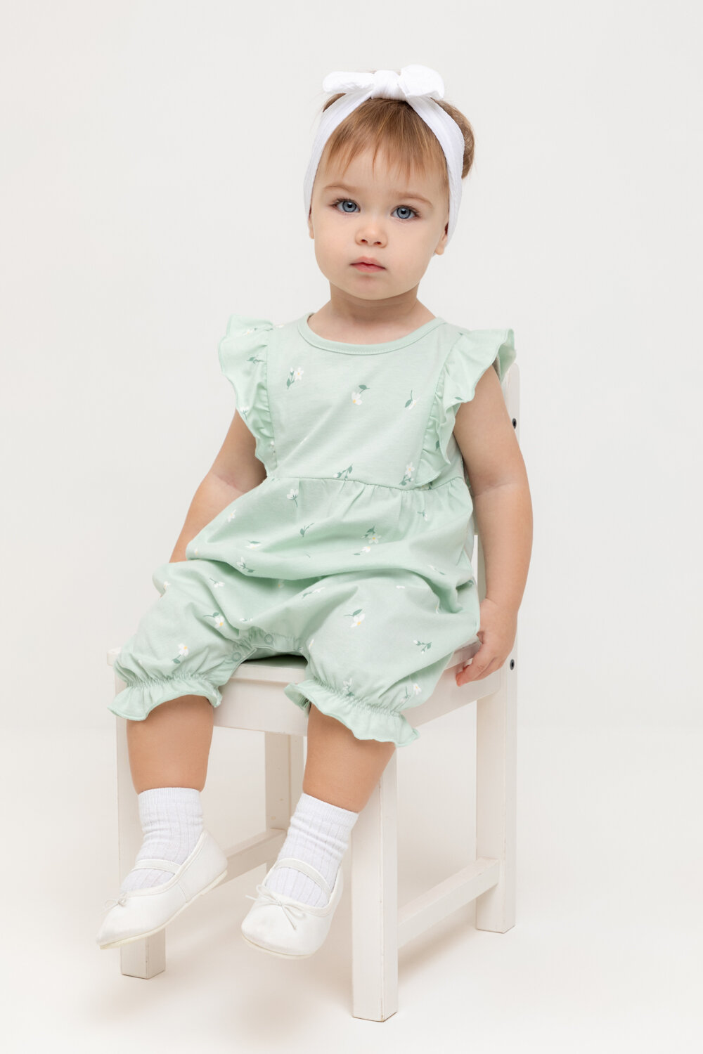 Легкий трикотажный песочник для девочки из высококачественного хлопка. Удобные застёжки на кнопки на спинке и по низу изделия. Верх украшен воздушными крылышками. Оригинальная набивка выполнена из стойких текстильных гипоаллергенных красителей. Изделие сохраняет цвет и форму после многократных стирок.