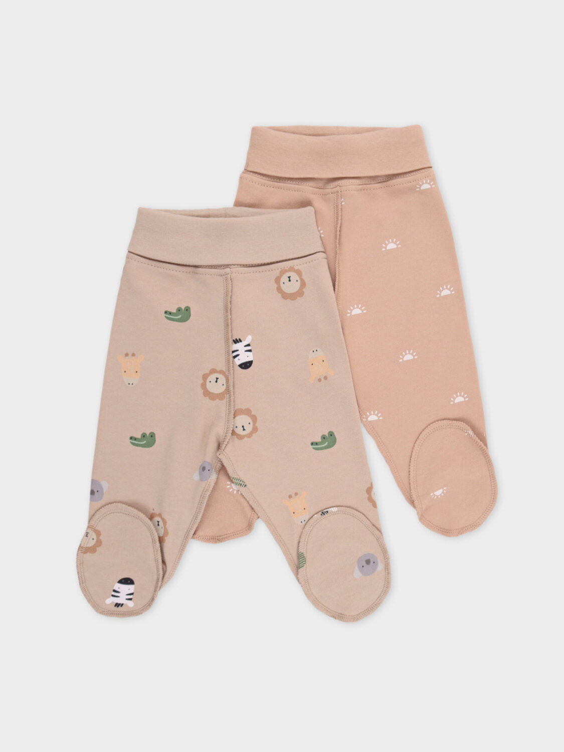 Ползунки для новорождённых из мягкого, эластичного трикотажа, произведённого из натурального хлопка. В упаковке 2 шт. Пояс на резинке. Оригинальная набивка выполнена из стойких, гипоаллергенных текстильных красителей. Все трикотажные полотна производятся в соответствии с нормами Швейцарского сертификата ЭкоТекс.