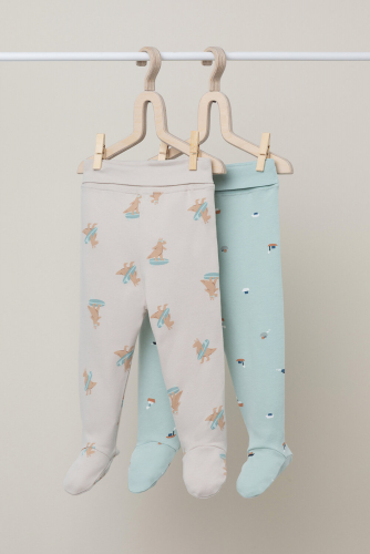 Ползунки для новорождённых из мягкого, эластичного трикотажа, произведённого из натурального хлопка. В упаковке 2 шт. Пояс на резинке. Оригинальная набивка выполнена из стойких, гипоаллергенных текстильных красителей. Все трикотажные полотна производятся в соответствии с нормами Швейцарского сертификата ЭкоТекс.