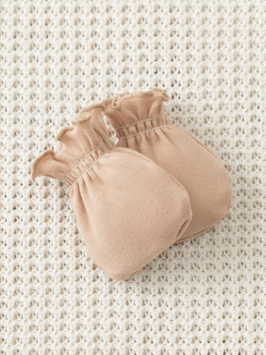 Варежки антицарапки для новорождённых из мягкого эластичного трикотажа интерлок, произведённого из натурального хлопка. Изделие фиксируется на руке с помощью мягкой резинки. Все трикотажные полотна производятся в соответствии с нормами Швейцарского сертификата ЭкоТекс.