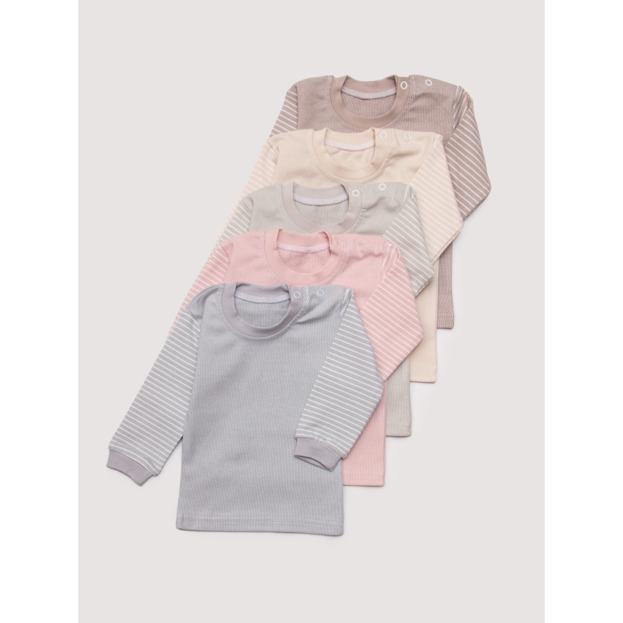 Кофта с 2 кнопками на плече. Товар продается набором по 5шт на размер (цвета в наборе: розовый, кремовый, голубой, серый, графит).
