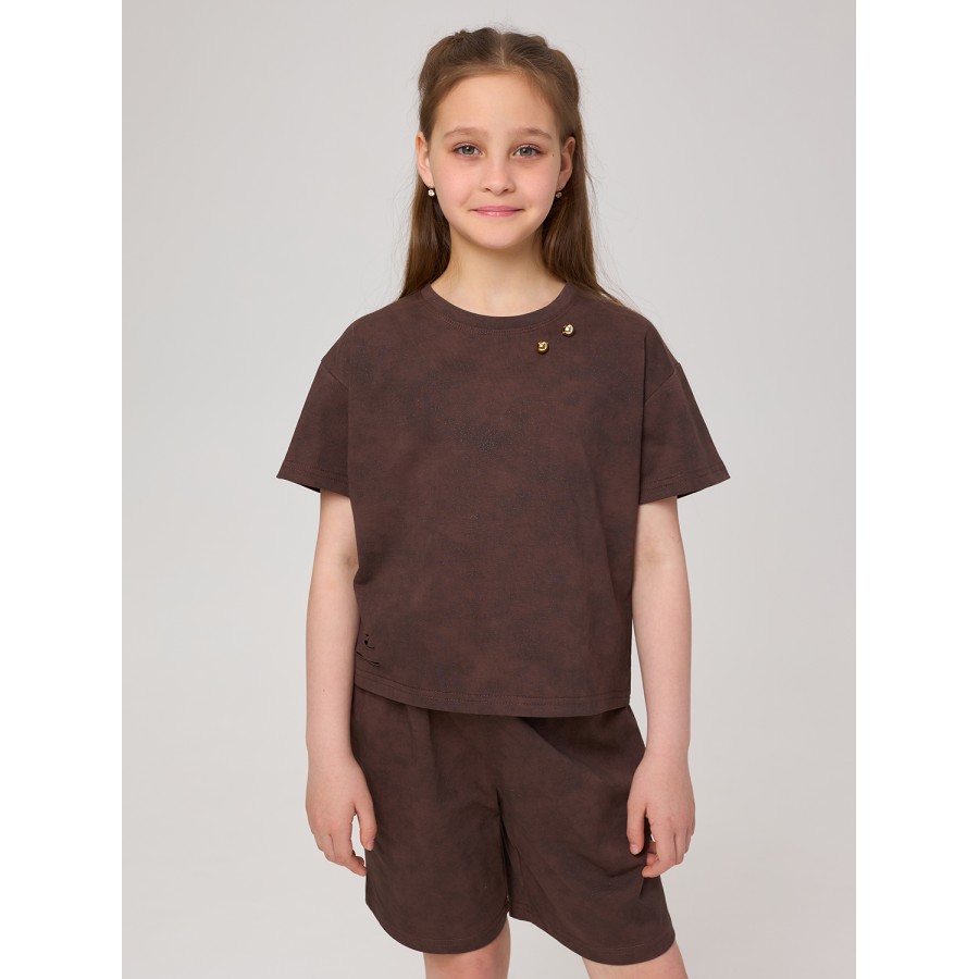 ..К76-71 Комплект футболка + шорты, шоколадный.