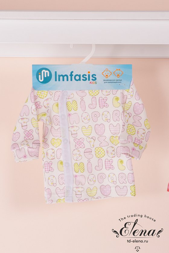 Кофточка для малышей выполнена из 100% хлопковой ткани, со смещенной застёжкой на кнопки и длинным рукавом на манжете.