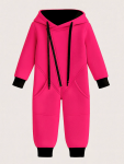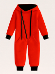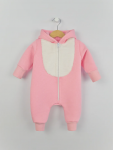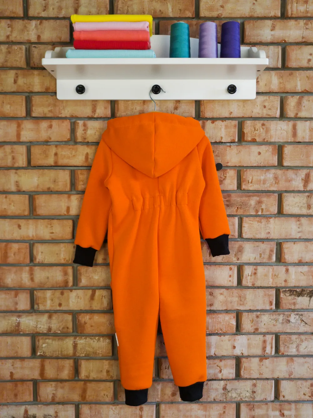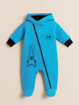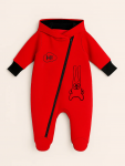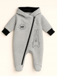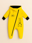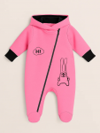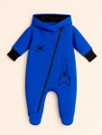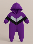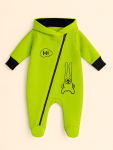 Модель оснащена удобной косой молнией, которая позволяет быстро и легко одевать ребёнка, не причиняя дискомфорта. Комбинезон плотно сидит на теле, но не стесняет движений благодаря свободному крою и эластичным манжетам на рукавах и штанинах. Капюшон надёжно защищает голову малыша от ветра и создаёт дополнительный уют.