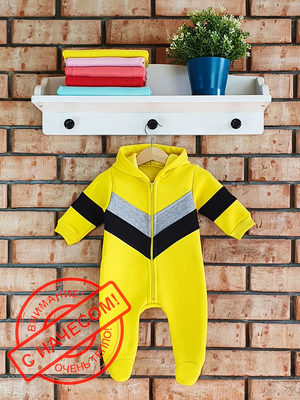 Изготовленный из плотного футера трехнитки с начесом, этот комбинезон гарантирует тепло даже в самые морозные дни. Благодаря своему яркому дизайну ваш малыш будет не только защищен от холода, но и привлекать внимание окружающих.
