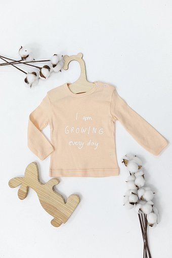 Футболка с длинным рукавом выполнена из хлопкового полотна. С застёжкой на кнопки на плече и принтом спереди.