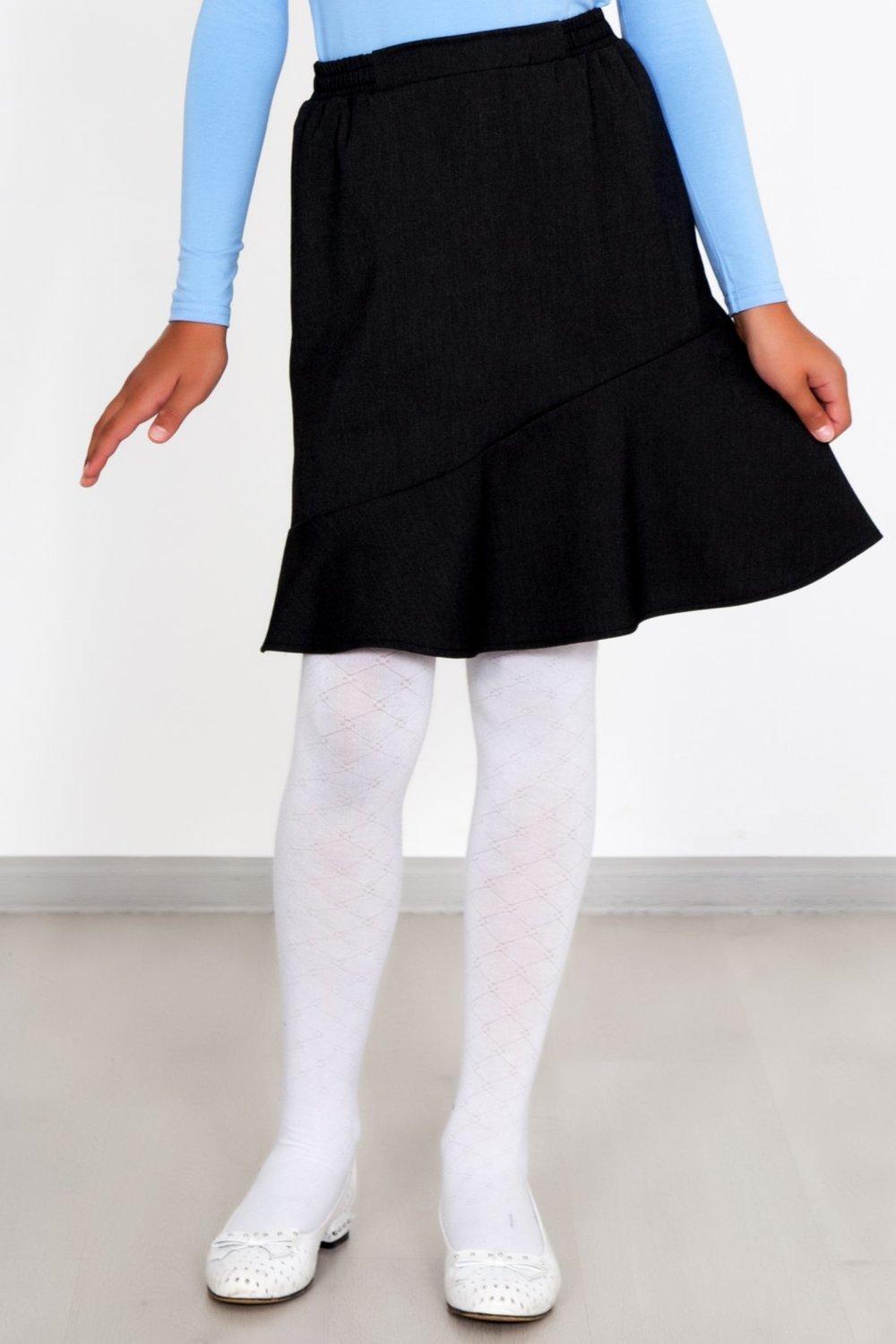 Классическая школьная юбка прямого кроя с воланом. Удобную посадку обеспечивает широкая поясная резинка.