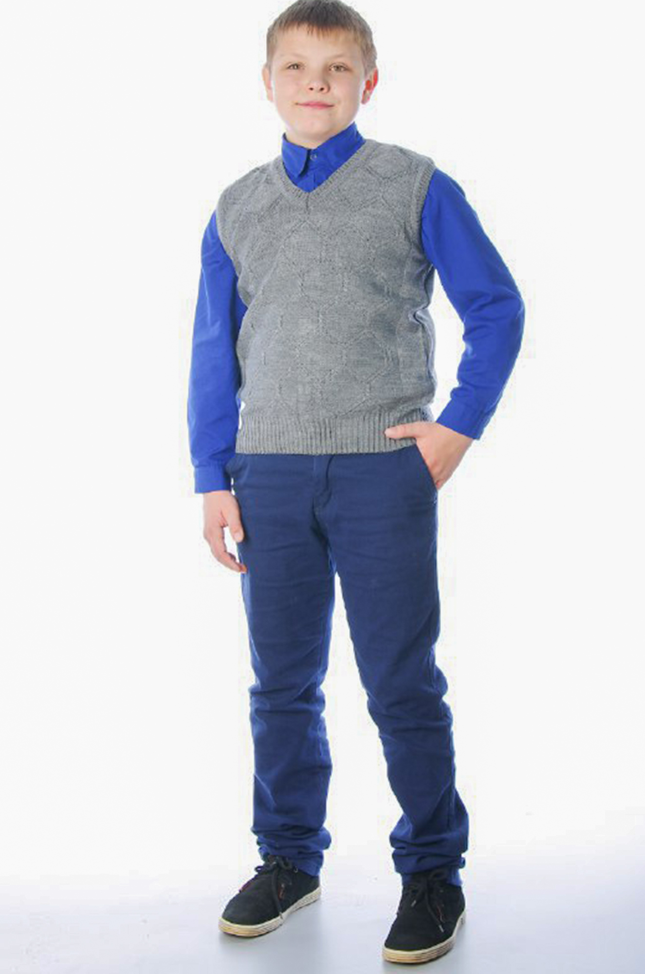 Стильный классический вязаный жилет для юных модников.
