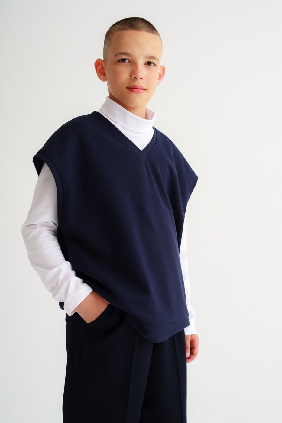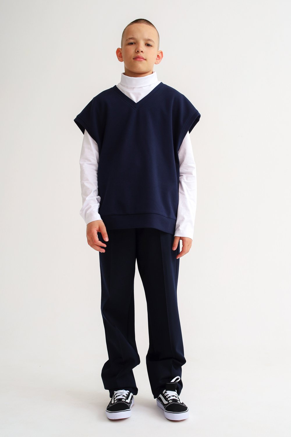 Умная многослойность для школьных будней – это когда образ смотрится законченным, а ребенку комфортно находится в нем целый учебный день. Жилет для тех, кто ценит удобство, ведь в этой модели ребенку не будет жарко, она хорошо тянется и практически не мнется.