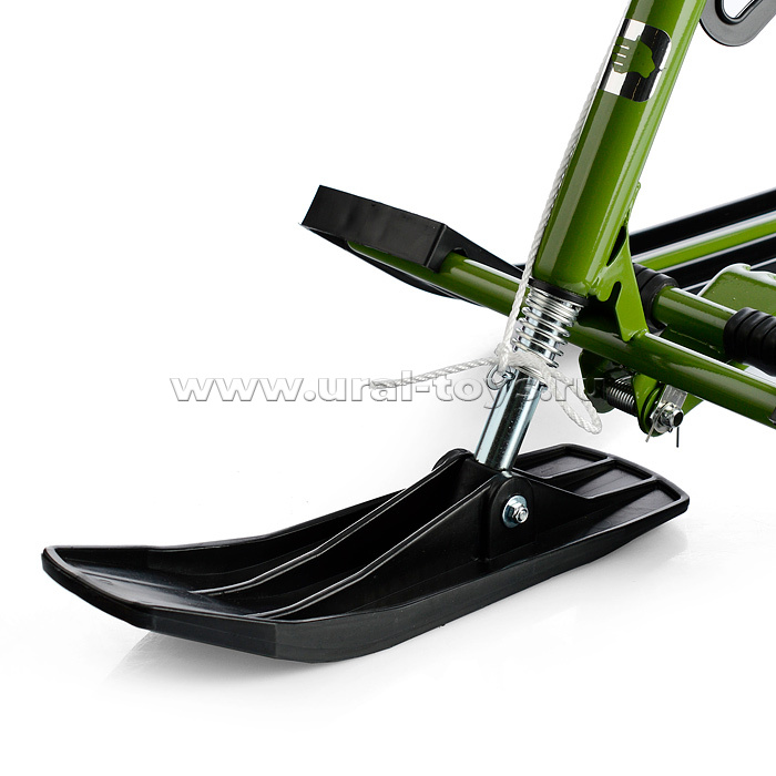 Торможение осуществляется при помощи стальных педалей с рифлёной поверхностью против соскальзывания ноги. Запомните: тормозное устройство не гарантирует резкую остановку, а лишь способствует понижению скорости, при неожиданно возникшем препятствии. Не используйте снегокат с неисправным тормозным устройством. Разрешённая нагрузка в 100 кг позволяет воспользоваться моделью не только малышу, но и его родителям.
