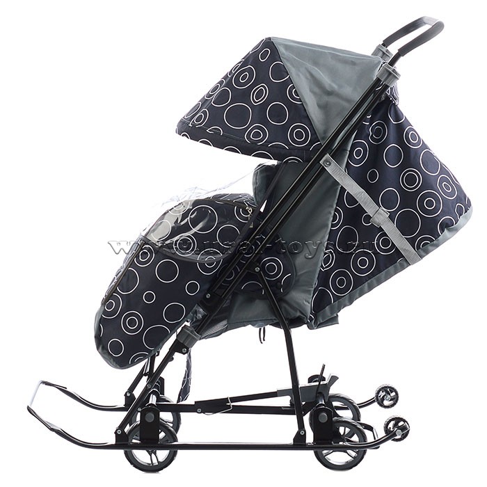 - высота до сиденья - 400 мм (на колёсах)/340 мм (на лыжах)