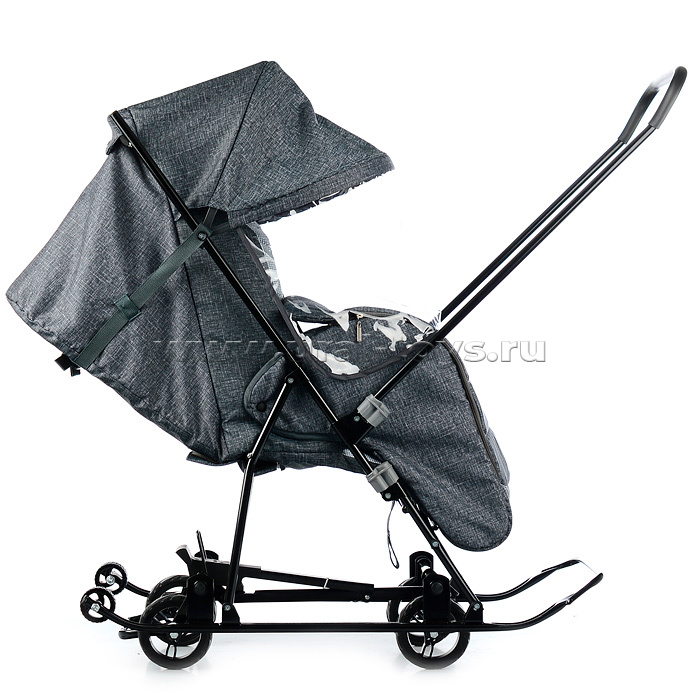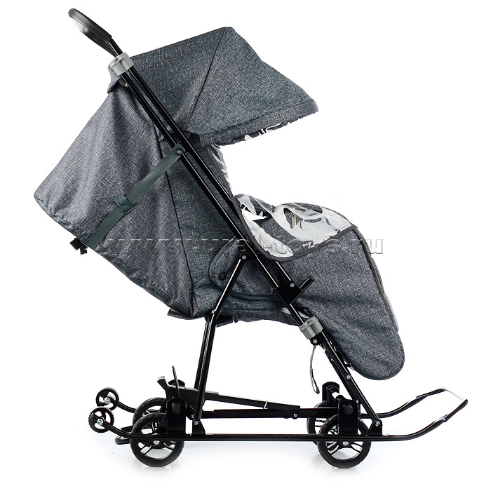 - высота до сиденья - 400 мм (на колёсах)/340 мм (на лыжах)