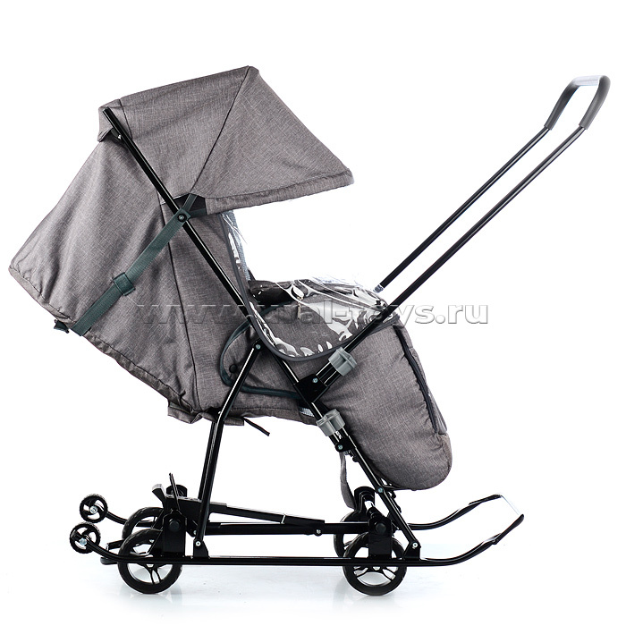 Санки-коляска Снежинка универсал-1 (лен серо-коричневый)