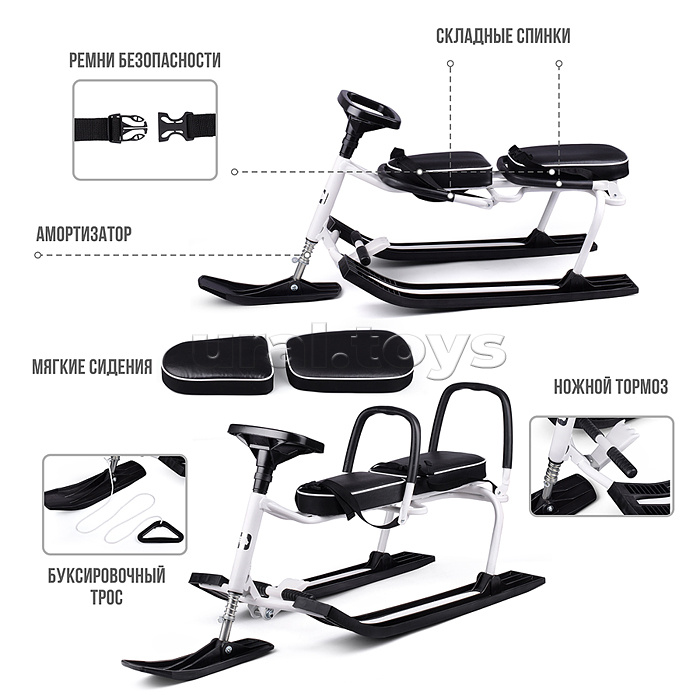 Игрушка Снегокат детский 503 "TWINS BABY" для двоих с двумя складными спинками (Белый)