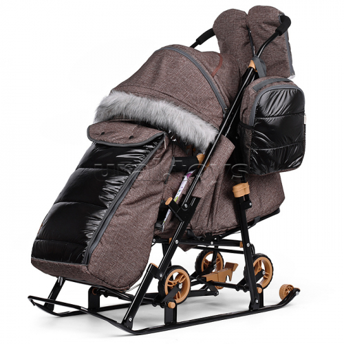 Санки-коляска Кидс 3-2Т (Лен пудровый) крупный ромб