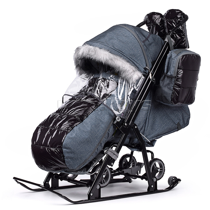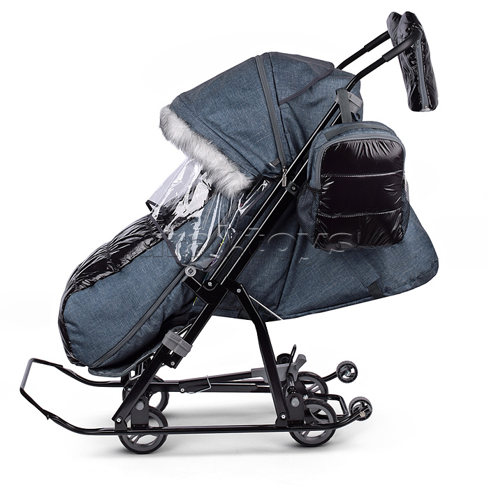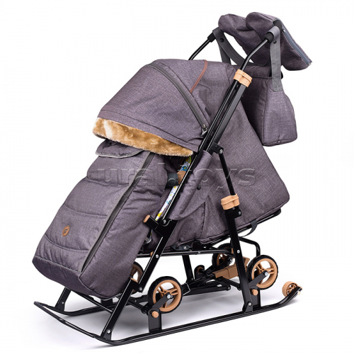 Санки-коляска "NOVA" лён (серо-зеленый)