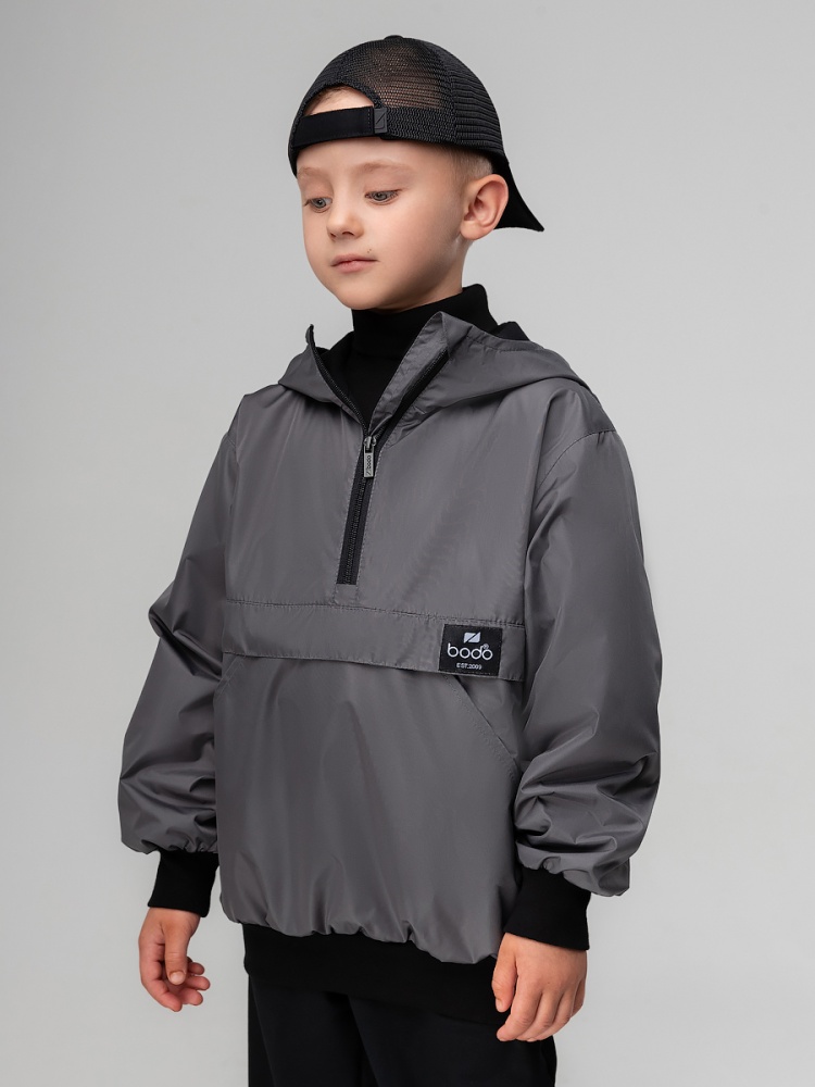 Материал Дюспо Состав 100% полиэстер Стильная ветровка анорак для детей. Материал верха: Дюспо, материал подклада хлопок 100 %, материал подклада на рукавах таффета. Материал Дюспо: водоотталкивающий, воздухообменный и ветрозащитный. Детали: сквозные боковые карманы, несъемный капюшон на стойке закрывает шею.Температурный режим: от +10 гр. зависимости от индивидуального теплообмена ребенка и промежуточного слоя одежды