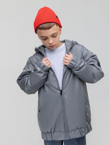Артикул 49-18MU Состав 100% полиэстер Материал Дюспо Утепленная куртка - бомбер на молнии с капюшоном со стойкой. Куртка на подкладке, прямого силуэта. Куртка со спущенным плечом и рукавами с манжетой, по низу изделия эластичный пояс. На полочке карманы расположены в рельефах. Куртка с карманами на кнопках. Материал - ткань курточная, плотность 80 г/м2. Утеплитель 100 г/м.кв. Подкладочный материал - кулирная гладь 100% хб., в рукавах - таффета. Температурный режим от +5 до +15, в зависимости от индивидуального теплообмена ребенка и промежуточного слоя одежды.