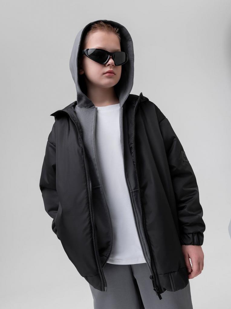 Бомбер с капюшоном 49-18MU; черный