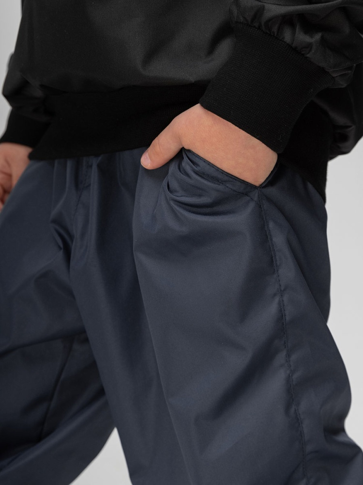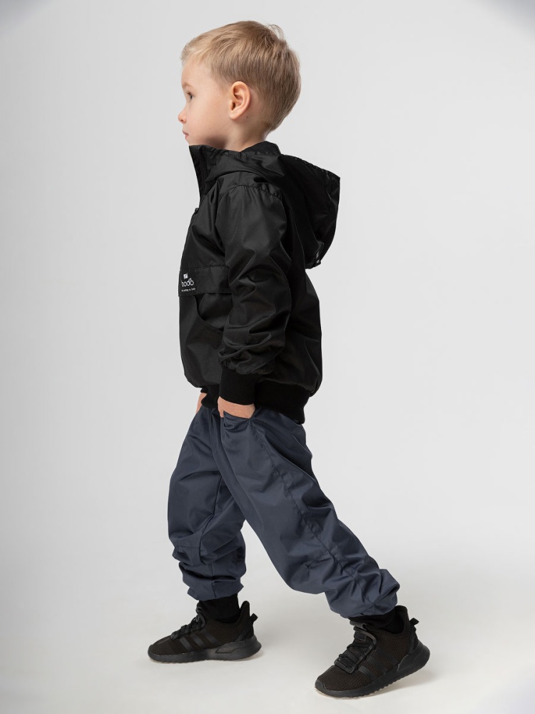 Материал Дюспо Состав 100% полиэстер Брюки детские из плотного и стойкого к изнашиванию и повреждениям материала Дюспо. Материал Дюспо: водоотталкивающий, воздухообменный и ветрозащитный. Состав основного материала Дюспо 100% полиэстер,подкладочный материал кулирная гладь 100% хлопок.
