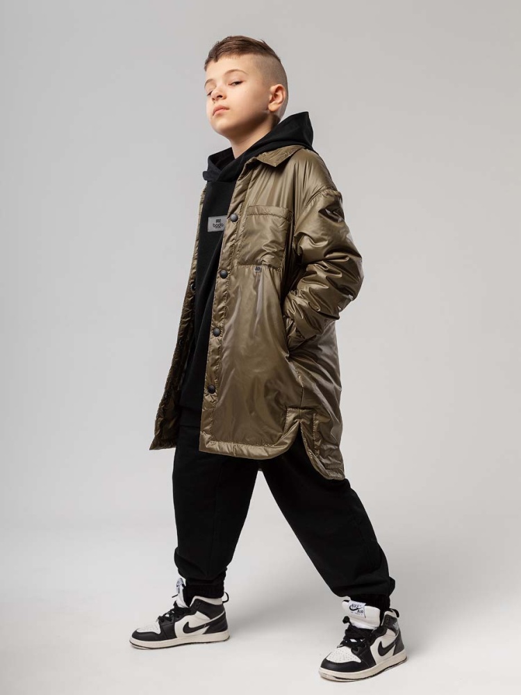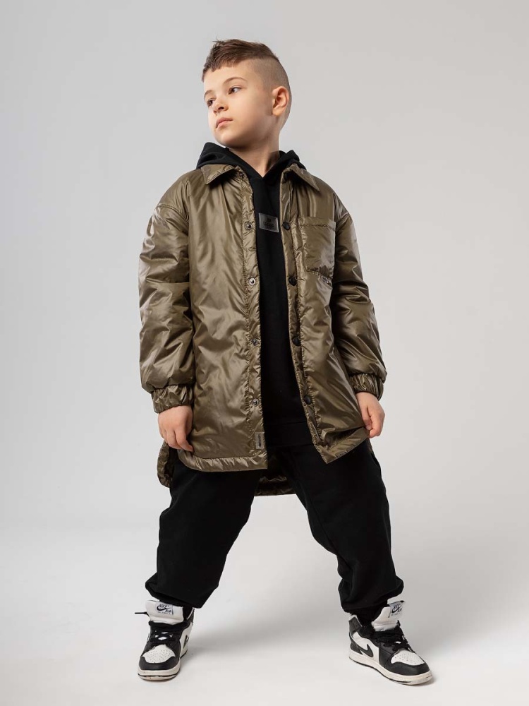 Материал Фитсистем стайл Состав 100% полиэстер Демисезонный детский удлиненный бомбер. Материал куртки Fitsystem, влагозащитный, воздухообменный и ветрозащитный. Внутри изделия легкий гипоаллергенный современный утеплитель Hetta micro, надежная защита от холода при минимальном объеме, сохраняет упругость и форму после многократных стирок. Детали: рукава на манжетах, накладной карман, карманы в боковых швах, застежка - кнопки. Материал верха: Fitsystem 100% полиэстер, утеплитель Hetta micro 100 г/кв.м, подкладочный материал кулирная гладь 100% хлопок