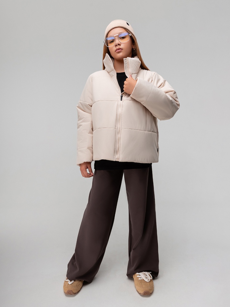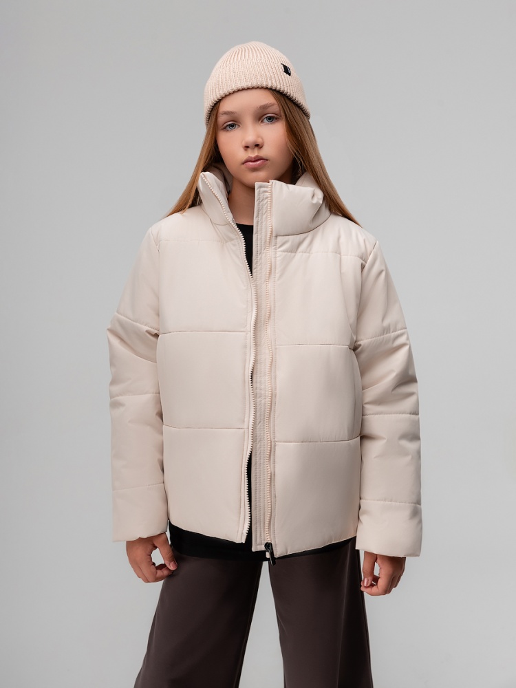 Материал курточная ткань Состав 100% полиэстер Куртка для детей школьного возраста. Куртка с подкладкой, прямого силуэта, с втачными рукавами, с воротником стойка. Куртка с центральной застёжкой на тесьму - «молния». На полочках располагаются карманы с листочкой. Материал верха: курточная ткань 100% полиэстер, утеплитель Hetta Filt S2 150 г/кв.м, подкладочный материал кулирная гладь хлопок 100% Температурный режим от -5 до +10, в зависимости от индивидуального теплообмена ребенка.