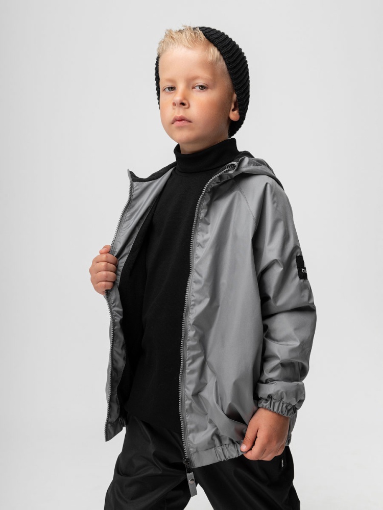 Материал Дюспо Состав 100% полиэстер Куртка с капюшоном для детей дошкольного возраста. Куртка на подкладке, свободного силуэта, с центральной застёжкой на молнию и карманами в боковых швах. Куртка с втачными рукавами с притачной манжетой. Куртка на поясе. Материал верха: Дюспо 100% полиэстер, подкладочный материал флис 100% полиэстер