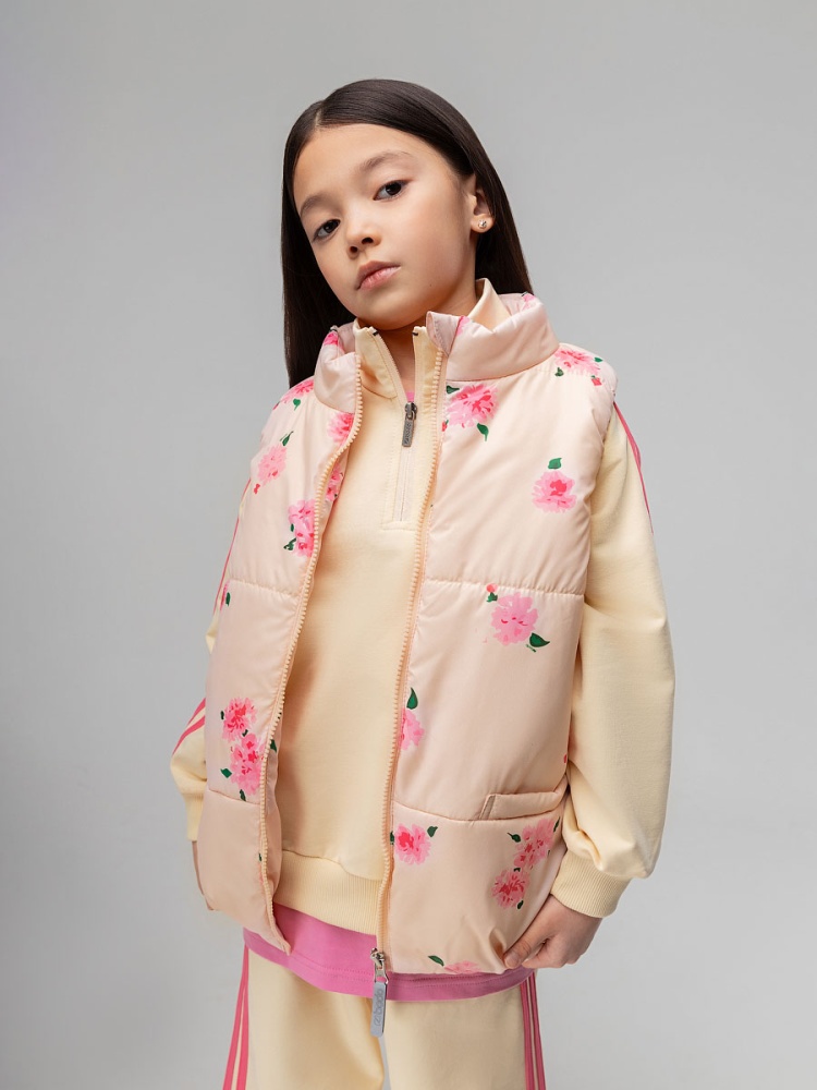 Материал курточная ткань Состав 100% полиэстер Жилет для детей дошкольного возраста. Жилет утеплённый на подкладке, прямого силуэта, с центральной бортовой застёжкой на кнопках. Воротник стойка. На полочке расположены карманы. Материал верха: курточная ткань Милан 100% полиэстер, утеплитель Hetta Filt 150 г/кв.м, подкладочный материал кулирная гладь 100% хлопок