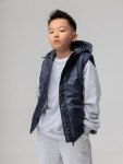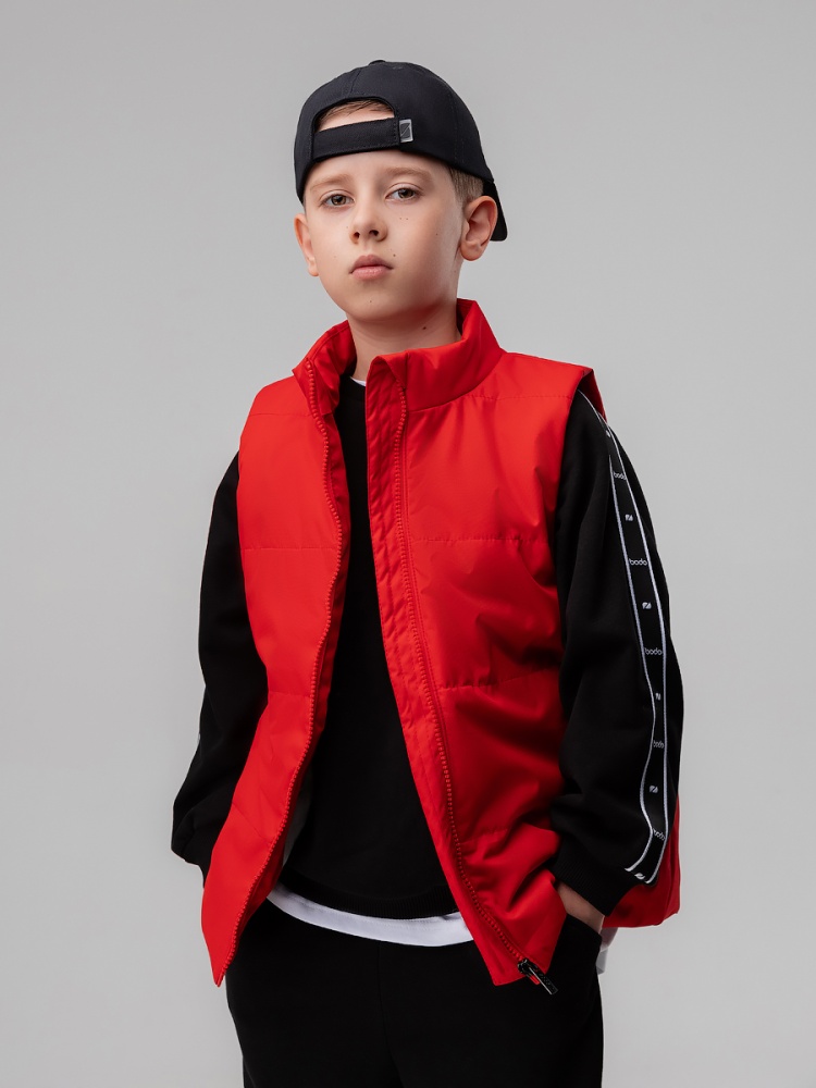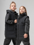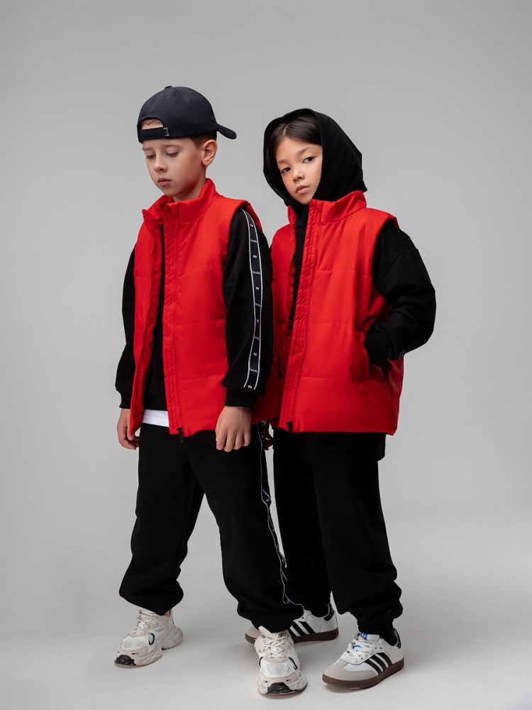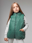 Материал мембранная ткань Состав 100% полиэстер Стильный жилет с боковыми карманами, без капюшона для детей дошкольного возраста.Материал жилета - плащевая ткань с эффектом фрчи\курточная ткань имеет специальное водоотталкивающее покрытие и пропитку, защищает от влаги и ветра. Подкладочный материал кулирная гладь 100% хлопок