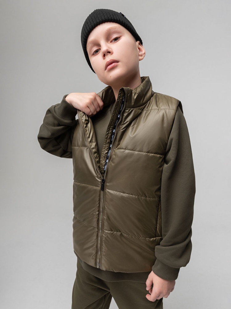 Материал Фитсистем стайл Состав 100% полиэстер высота упаковки, мм 4 Стильный жилет для детей школьного возраста. Материал FITSYSTEM имеет специальное водонепроницаемое и водоотталкивающее покрытие и пропитку, защищает от дождя, влаги и ветра. Материал верха: Fitsystem Style 100% полиэстер, утеплитель Hetta micro premium S4-K 150 г/кв.м, подкладочный материал кулирная гладь 100% хлопок