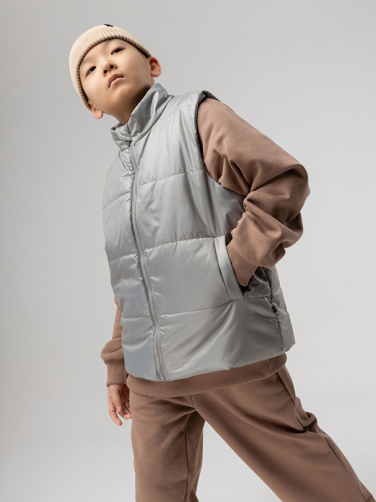 Материал Фитсистем стайл Состав 100% полиэстер высота упаковки, мм 4 Стильный жилет для детей школьного возраста. Материал FITSYSTEM имеет специальное водонепроницаемое и водоотталкивающее покрытие и пропитку, защищает от дождя, влаги и ветра. Материал верха: Fitsystem Style 100% полиэстер, утеплитель Hetta micro premium S4-K 150 г/кв.м, подкладочный материал кулирная гладь 100% хлопок