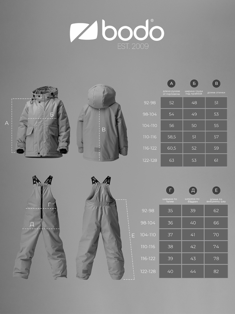Материал мембранная ткань Состав 100% полиэстер Костюм зимний для детей дошкольного возраста. Куртка с подкладкой, прямого силуэта, с втачными рукавами. Подкладка: флис. Внутри куртки имеется эластичная лямка. Куртка с центральной застёжкой на тесьму - «молния» закрытая ветрозащитной планкой. Куртка с капюшоном, с регулировкой по диаметру капюшона. На полочке располагаются два кармана закрытые клапаном. Брюки утеплённые для детей дошкольного возраста. Брюки прямые, свободные, на молнии. Брюки на регулируемых подтяжках. Низ брюк прямой. По низу брюки снабжены защитой от снега. Костюм мембранный, мембрана 4000мм/6000г/м². Куртка: утеплитель куртка Hetta micro 300 г/м², брюки Hetta micro 150 г/м², подкладочный материал куртка флис 100% полиэстер, брюки кулирная гладь 100% хлопок. Температурный режим до -30 гр., в зависимости от индивидуального теплообмена ребенка и промежуточного слоя одежды.