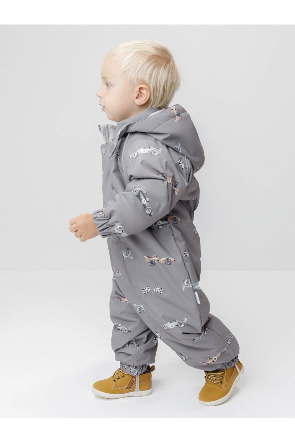 Демисезонный комбинезон ясельный с утеплителем Fellex®, 120 г/м2. Выполнен из мембранной ткани с дополнительной тефлоновой обработкой. Данный вид обработки предохраняет изделие от загрязнения и лучше отводит влагу. Подклад из 100% хлопка. Для удобного одевания комбинезон застёгивается на удлинённую молнию с защитой подбородка. Ветрозащитная планка фиксируется на липучках и кнопках. Утяжка на капюшоне с потайным стоппером. По низу рукавов и брючин, а также на спинке изделия предусмотрены эластичные резинки для лучшего прилегания. Для фиксации комбинезона используются съёмные силиконовые штрипки. В размерах 62-68, 68-74 и 74-80 есть функциональные отвороты на рукавах и брючинах. Во всех изделиях верхнего ассортимента для безопасности ребёнка предусмотрены светоотражающие элементы.