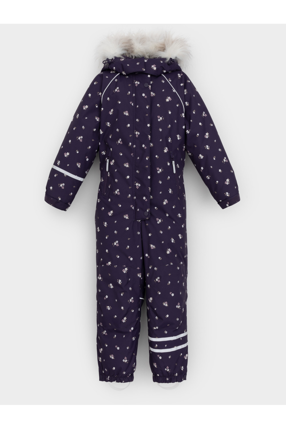 Зимний комбинезон для девочки с утеплителем Fellex®: 250 г/м2 . Выполнен из мембранной ткани с дополнительной тефлоновой обработкой, которая предохраняет изделие от загрязнений и отталкивает влагу. Подклад выполнен из 100% полиэстера Tricot. Комбинезон застёгивается на молнию и внешнюю планку на липучках и кнопках, предусмотрена защита подбородка. Съёмный капюшон имеет эластичную утяжку со стопперами и отстёгивающийся искусственный мех. Резинка по спинке обеспечивает лучшее прилегание. По бокам два кармана на молнии. Эластичные манжеты на рукавах регулируются по ширине с помощью липучки, по низу изделия - с помощью кнопки. Внутренняя противоснежная юбка защищает обувь от попадания снега и удерживает комбинезон в закреплённом положении, предусмотрены отстёгивающиеся штрипки. Во всех изделиях верхнего ассортимента для безопасности ребёнка предусмотрены светоотражающие элементы.