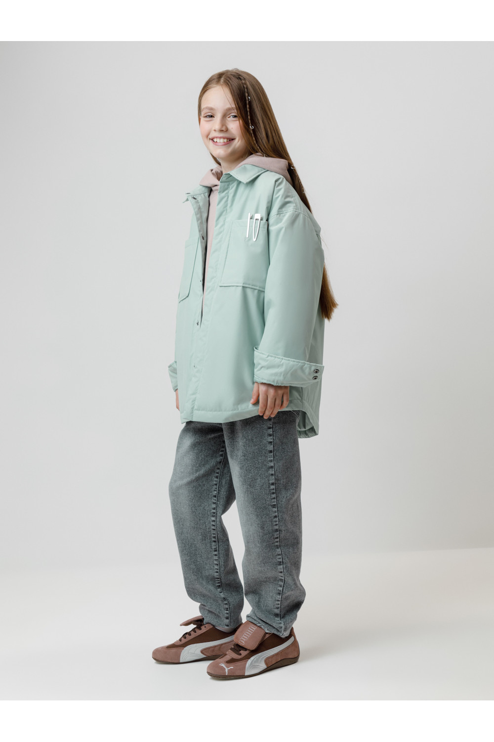 Куртка-рубашка для девочки с утеплителем SEE®: 60 г/м2. Выполнена из мембранной ткани с дополнительной тефлоновой обработкой. Данный вид обработки предохраняет изделие от загрязнения и лучше отводит влагу. Подклад из 100% полиэстера. Спереди застёгивается на потайные кнопки. На груди два накладных кармана. Во всех изделиях верхнего ассортимента для безопасности ребенка предусмотрены светоотражающие элементы.