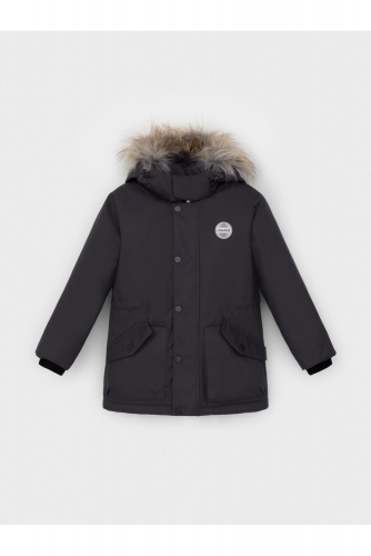 Зимняя парка для мальчика с утеплителем SEE®: 250 г/м2. Выполнена из мембранной ткани с дополнительной тефлоновой обработкой, которая предохраняет изделие от загрязнений и отталкивает влагу. Подклад выполнен из 100% полиэстера Tricot. Парка застёгивается на молнию и внешнюю планку с металлическими кнопками, предусмотрена защита подбородка. Съёмный капюшон на кнопках и липучках имеет эластичную утяжку со стопперами и отстёгивающуюся опушку из искусственного меха. На рукавах внутренние эластичные манжеты. Два накладных кармана с клапанами по бокам. По талии эластичная утяжка со стопперами. Во всех изделиях верхнего ассортимента для безопасности ребёнка предусмотрены светоотражающие элементы.