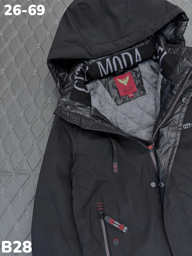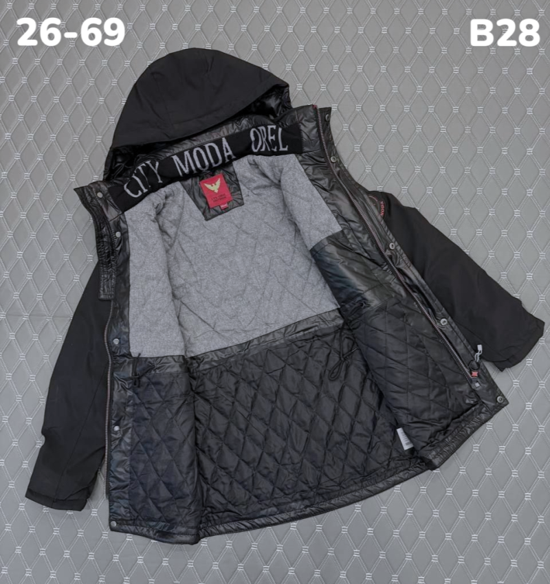 Внутри куртки на грудии спинке подкладка из трикотажа создает дополнительный слой утепления.