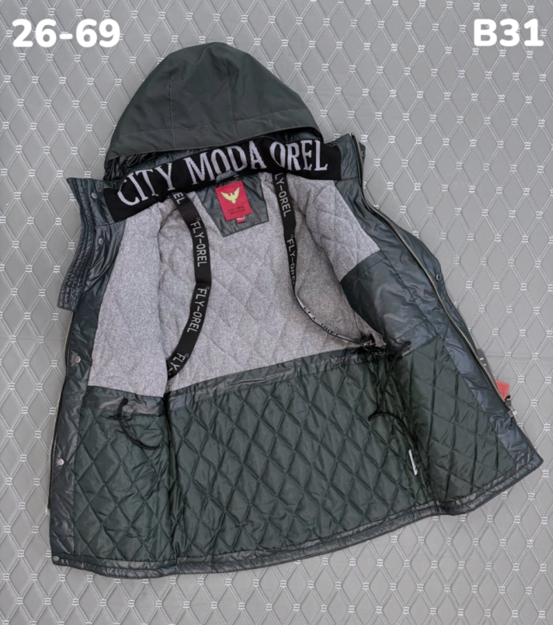 Внутри куртки на грудии спинке подкладка из трикотажа создает дополнительный слой утепления.